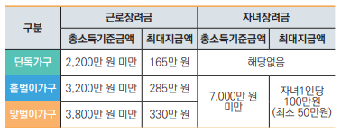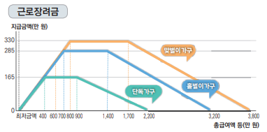 정부는 근로, 자녀장려금을 지급함으로써 근로 또는 사업을 장려하고, 실질소득과 자녀양육을 지원하고 있습니다.