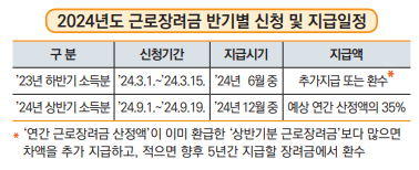 근로장려금 정기 및 반기 지급액 및 지급시기