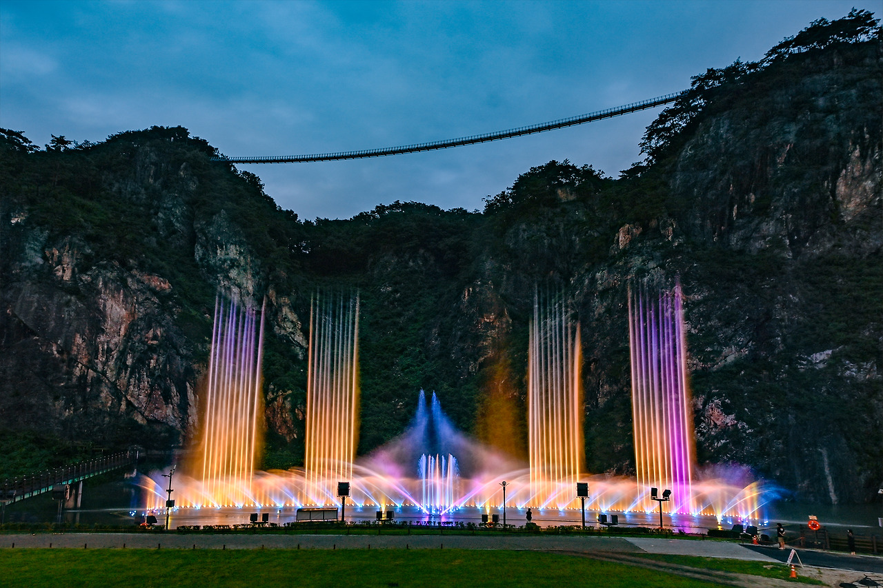 - 특히 미디어 파사드는 국내 최대 규모로, 폭 250m, 높이 70m의 자연 암벽을 스크린으로 사용해 다양한 영상을 선보입니다.